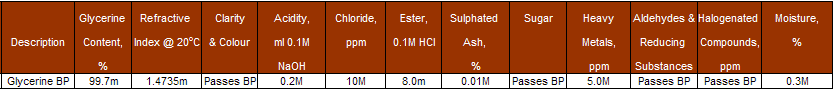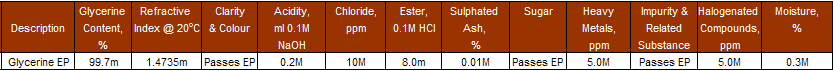 Glycerin EP 99.7% note: M=Maximum m=Minimum