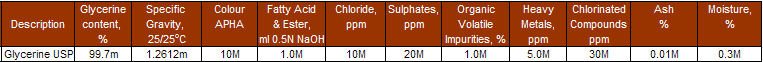 Glycerin EP 99.7% note: M=Maximum m=Minimum